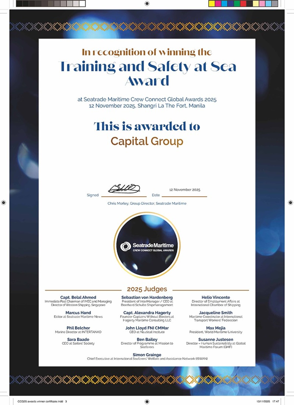 At Capital Group, we believe that exceptional training and uncompromising safety standards are inseparable. Our Chios Training Center doesn't just build technical skills β it develops safety-conscious maritime professionals who protect lives at sea.